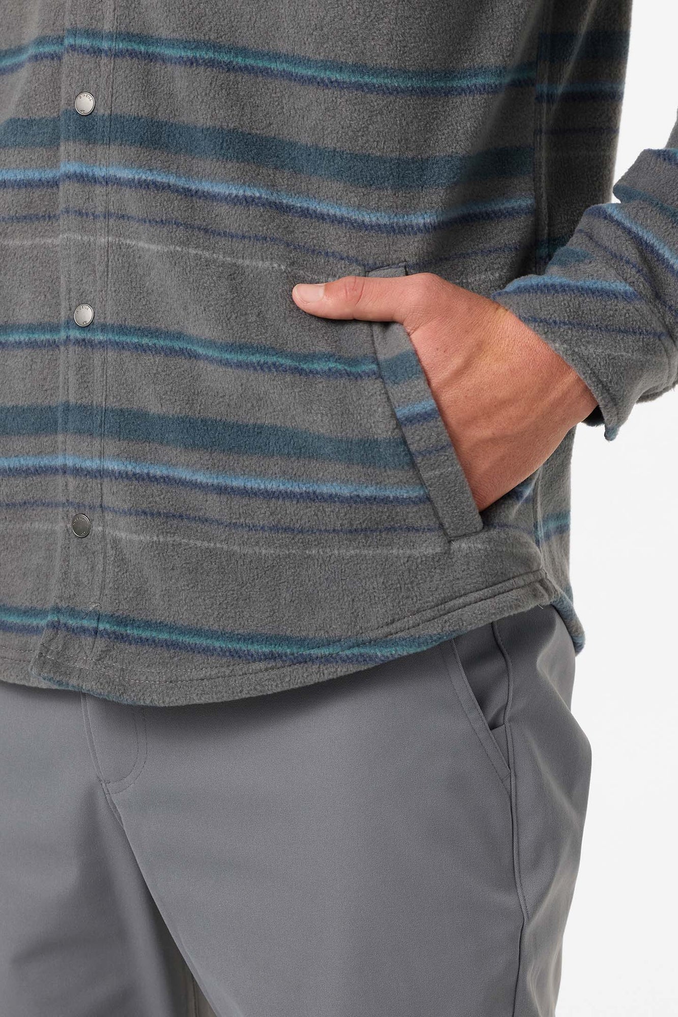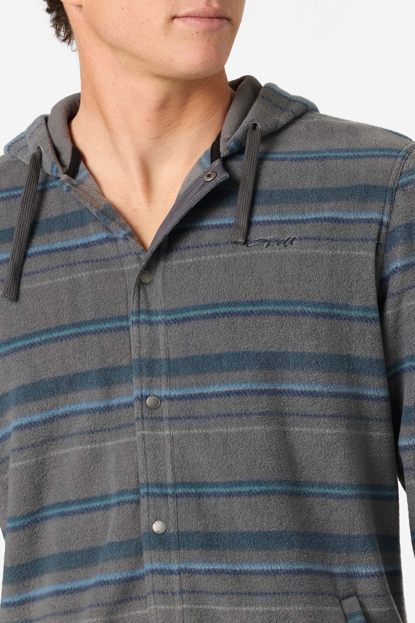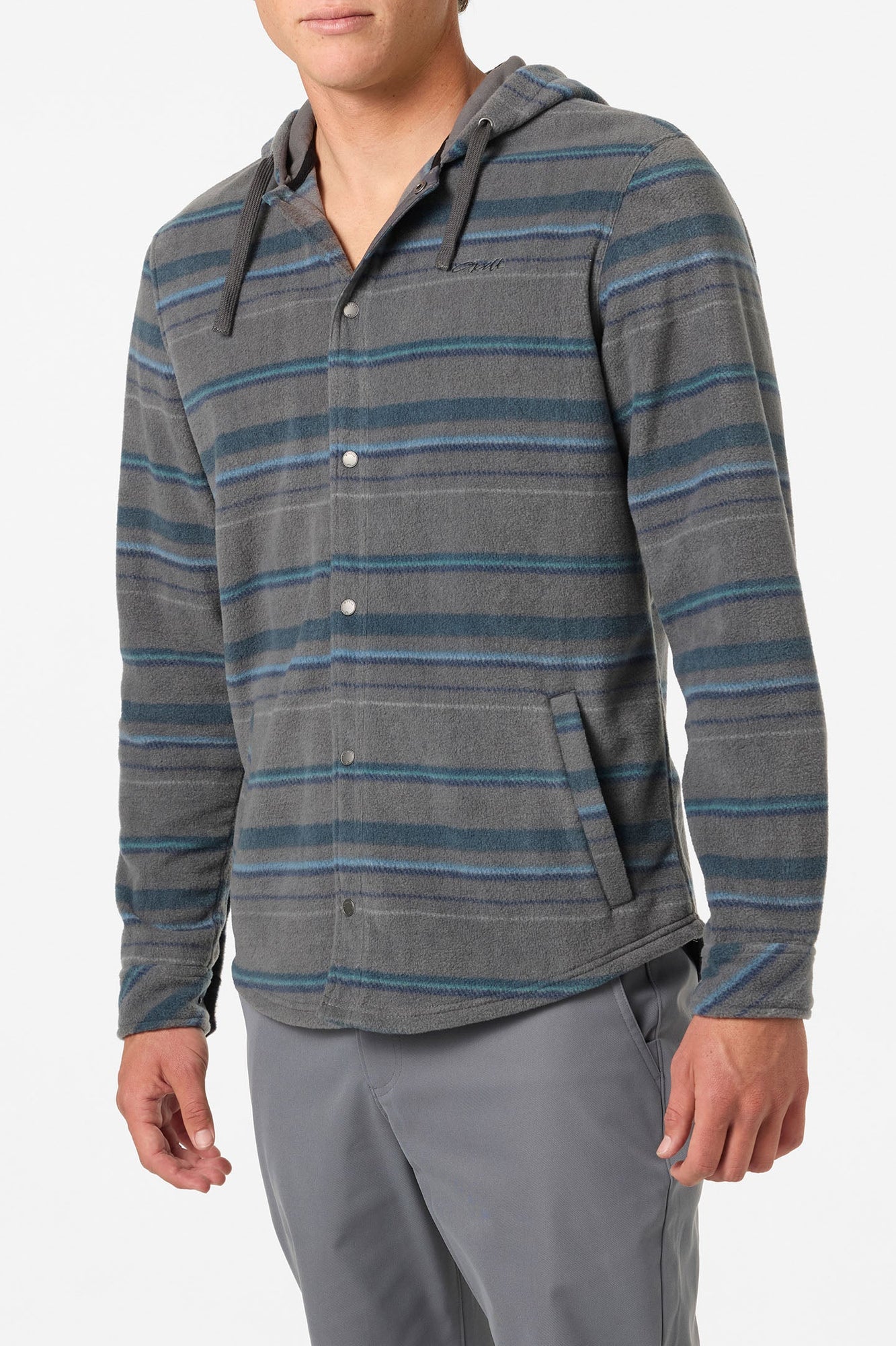 Affrontez le froid avec ce manteau polaire chaud et résistant. Il est doté d'une fermeture à pression sur le devant, d'un capuchon avec cordon de serrage et d'un imprimé a carreau classique.