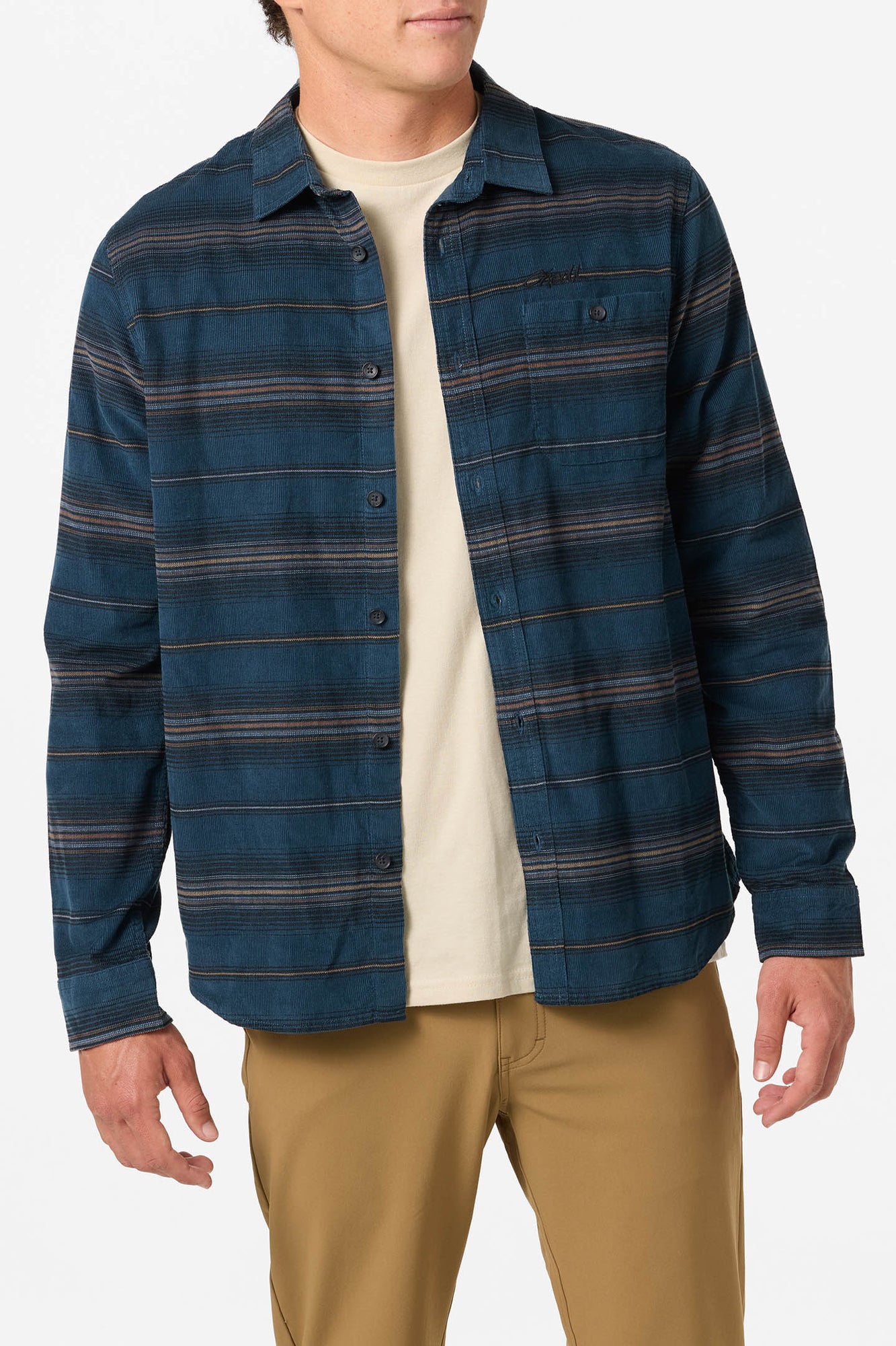 Fabriquée en micro velours côtelé doux imprimé, cette chemise boutonnée à manches longues allie un style relax avec une touche classique. Dotée d’une coupe standard et d’une poche poitrine, elle est idéale à superposer lors des journées fraîches.