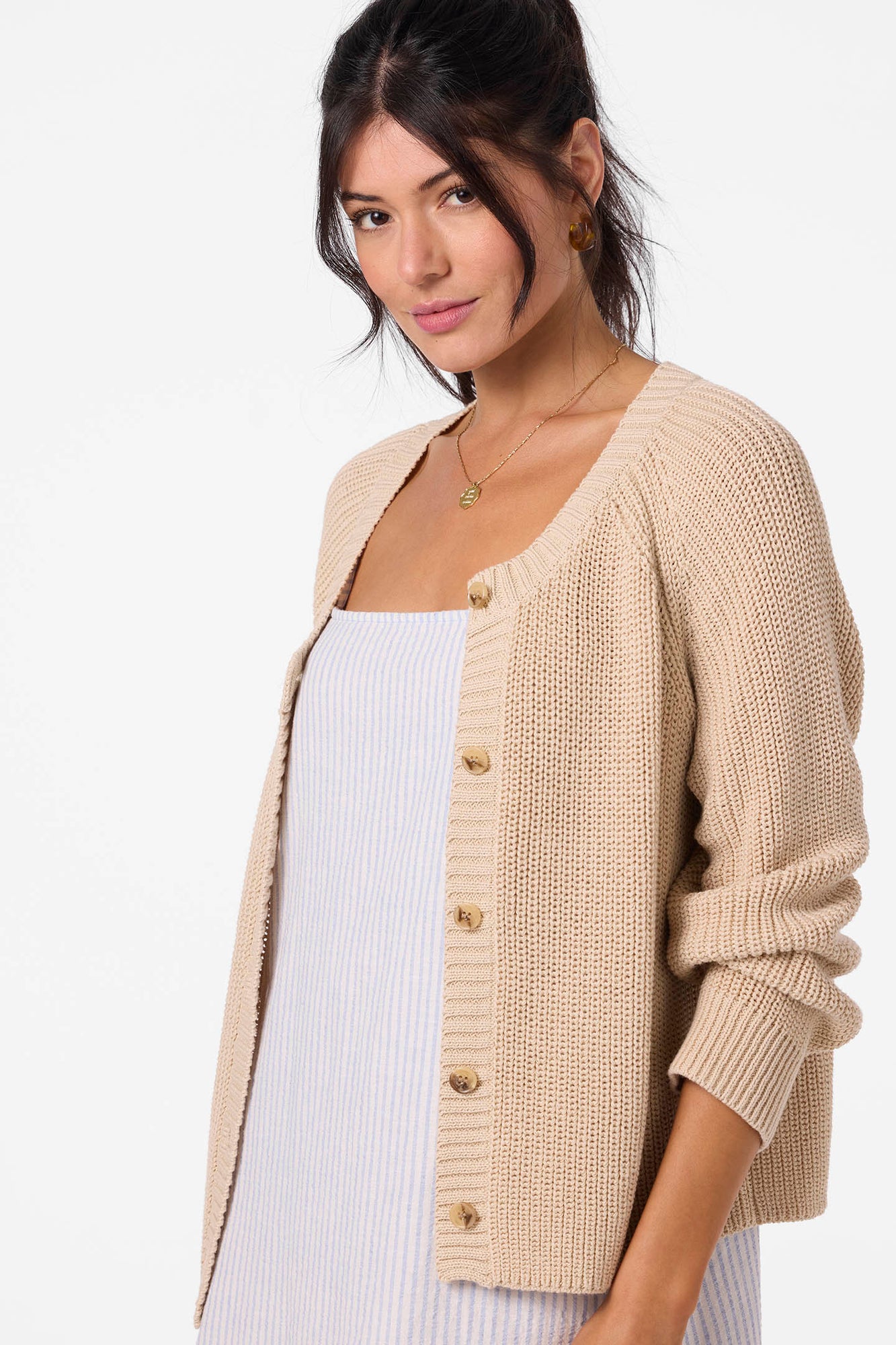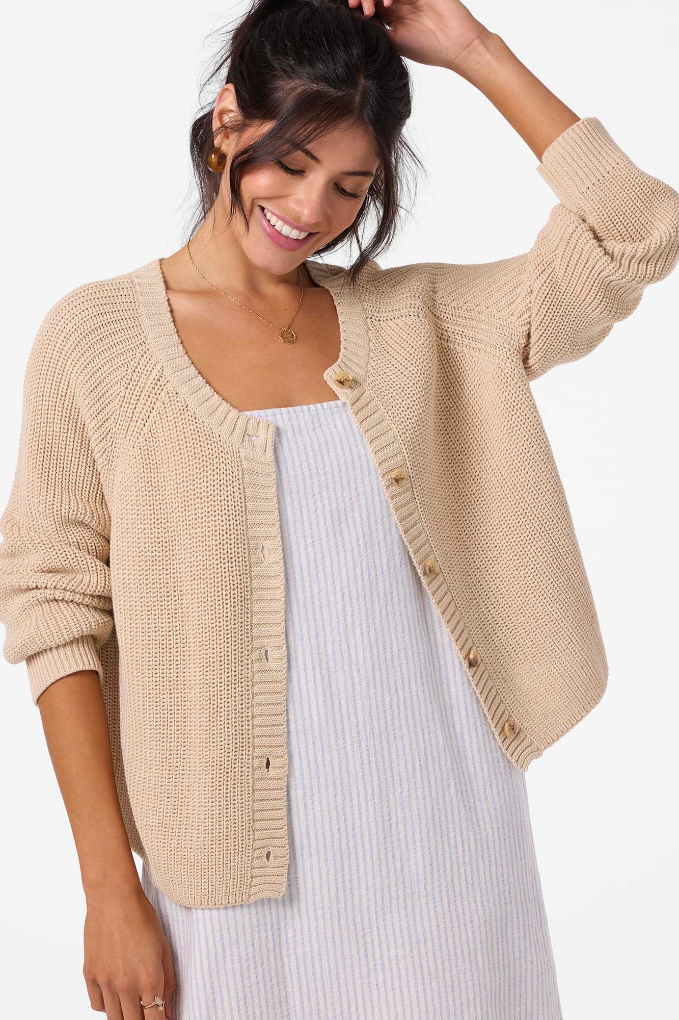 - Fermeture à boutons, manches raglan, poignets et encolure côtelés