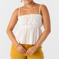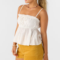 Effortless charm meets summer comfort in this breezy cotton tank top. With its playful print and adjustable fit, it's your new go-to for easy sunny days.