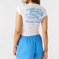 Casual woven short that everyone needs in their closet. It features a lightweight yarn dye stripe design, elastic waist with drawcord and front hip pockets.