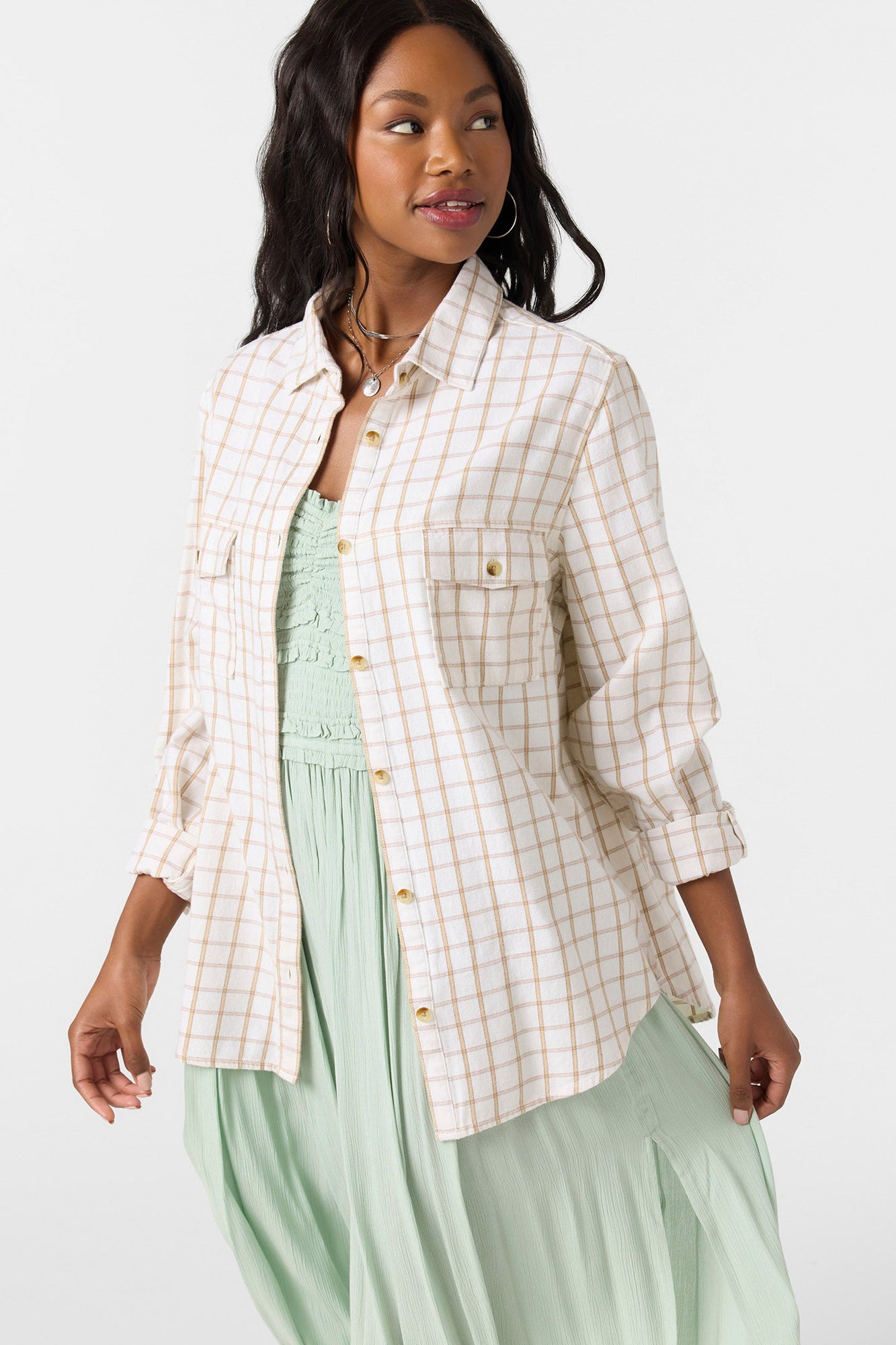 Effortlessly stylish oversized flannel shirt that has a front button design, super soft feel and classic plaid print.