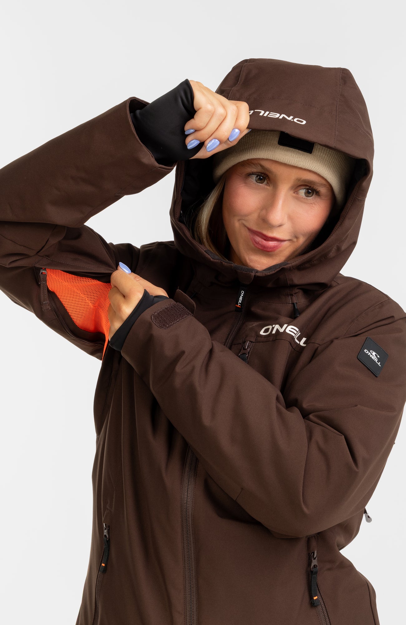 The slim-fit FWC'Cruz Snow Jacket is engineered for performance. Built with 10K waterproofing and 10K breathability in combination with a PFC-free, water-repellent coating, it keeps you warm, dry, and comfortable on and off the slopes. Featuring cutting-edge O'Neill V-Design Body Mapping technology, a smart temperature-regulation system with integrated PrimaLoft Active Evolve panels and REPREVE recycled polyester insulation, the jacket delivers dynamic warmth without bulk. Armpit venting helps regulate temperature, and a storm placket, snow gaiter, and jacket-pants connector system create a seamless barrier against wind and snow. The adjustable fixed hood offers extra coverage, while LYCRA wrist gaiters with thumbholes and Velcro cuff adjusters provide a snug fit to seal in warmth. Multiple secure pockets keep essentials within easy reach, making this jacket the perfect companion for long days on the slopes.