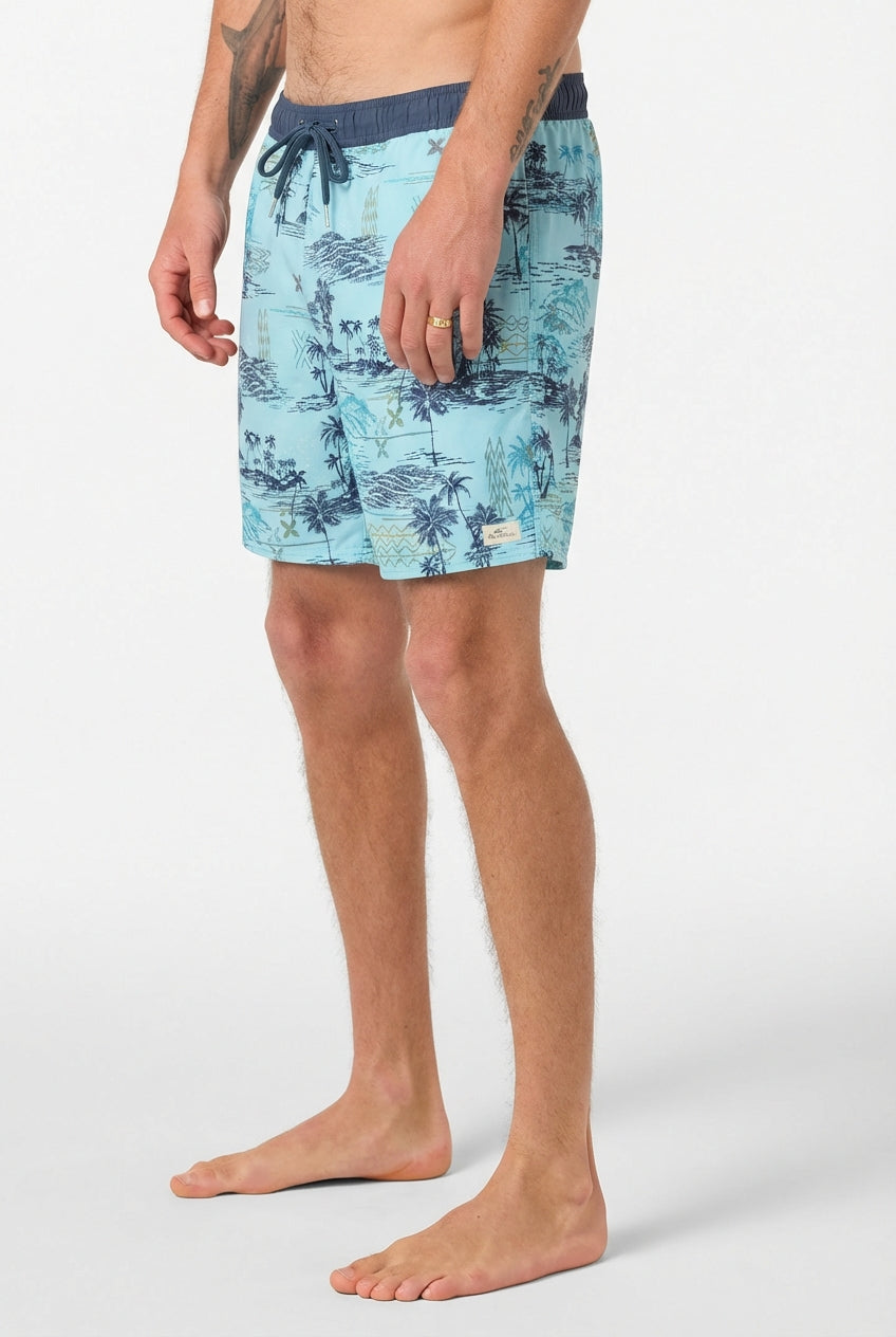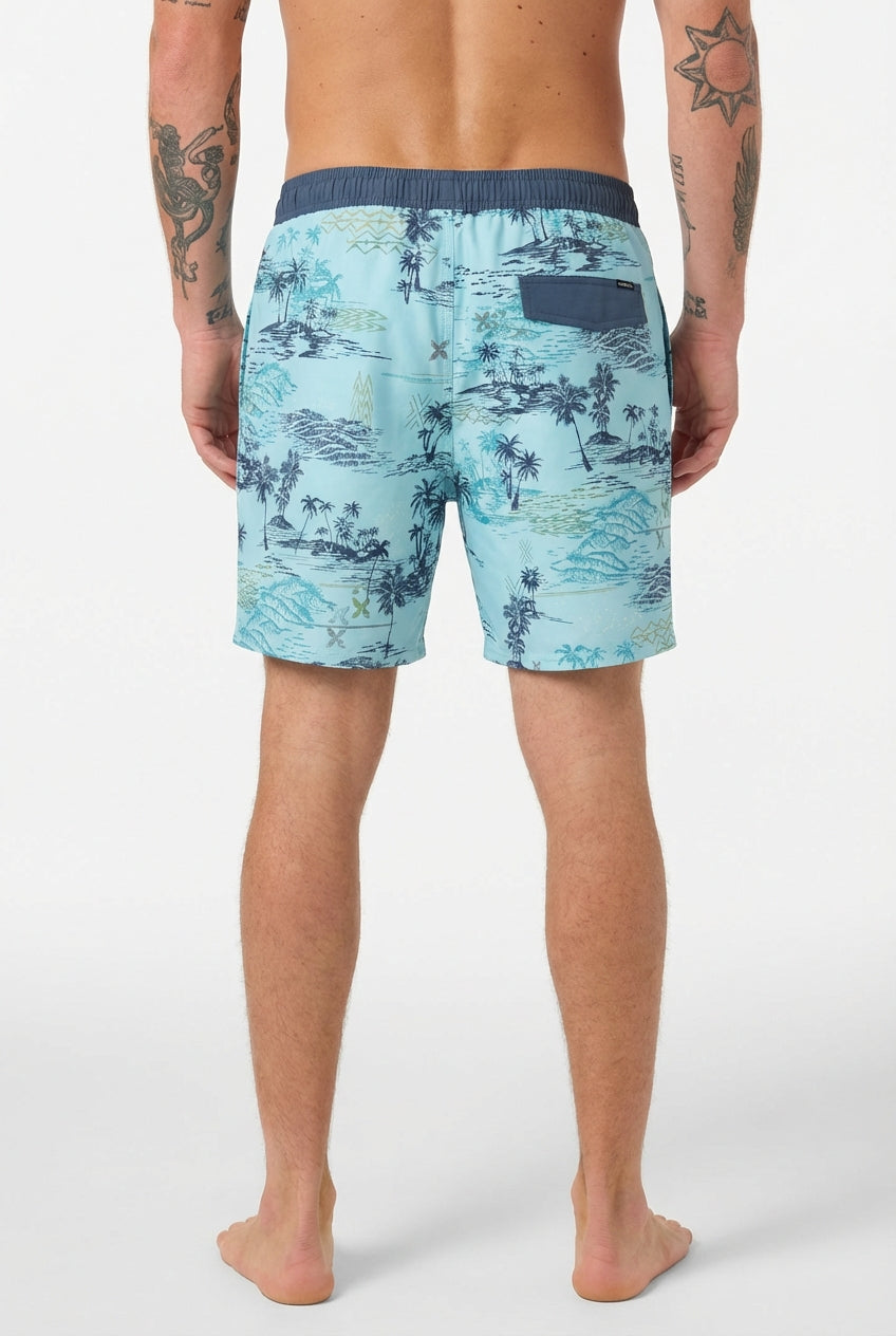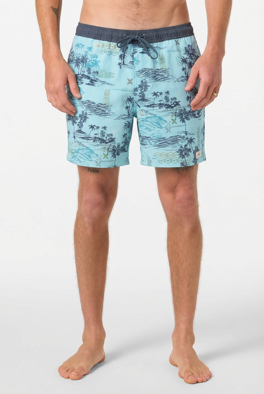 Designed for comfort and performance in and out of the water, the O’Neill Men’s Elastic Waist Trunk offers a modern above-the-knee fit with a retro-inspired style. Made from a stretch blend of 74% recycled polyester, 18% cotton, and 8% elastane, these trunks are soft, lightweight, and quick-drying. Featuring a built-in boxer liner for added support, and an elastic waistband for a secure, adjustable fit, they provide both functionality and style. The 17'' outseam and 7'' inseam deliver a comfortable, above-the-knee length ideal for swimming, surfing, or casual summer wear.