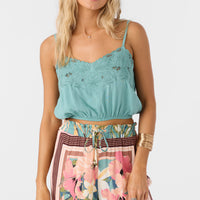 Your sunny day go-to featuring a lightweight woven fabric design, crop length fit and custom embroidery art at the neckline.