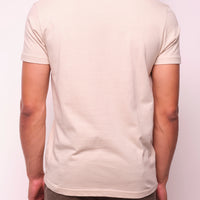 High-quality soft cotton t-shirt that has a solid color design and soft hand screen print. The standard fit is true to size, not too roomy but not too tight.