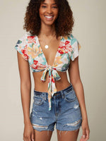 Take on the day in this perfectly casual woven top. It has a relaxed fit, deep-v neckline and allover floral print design.
