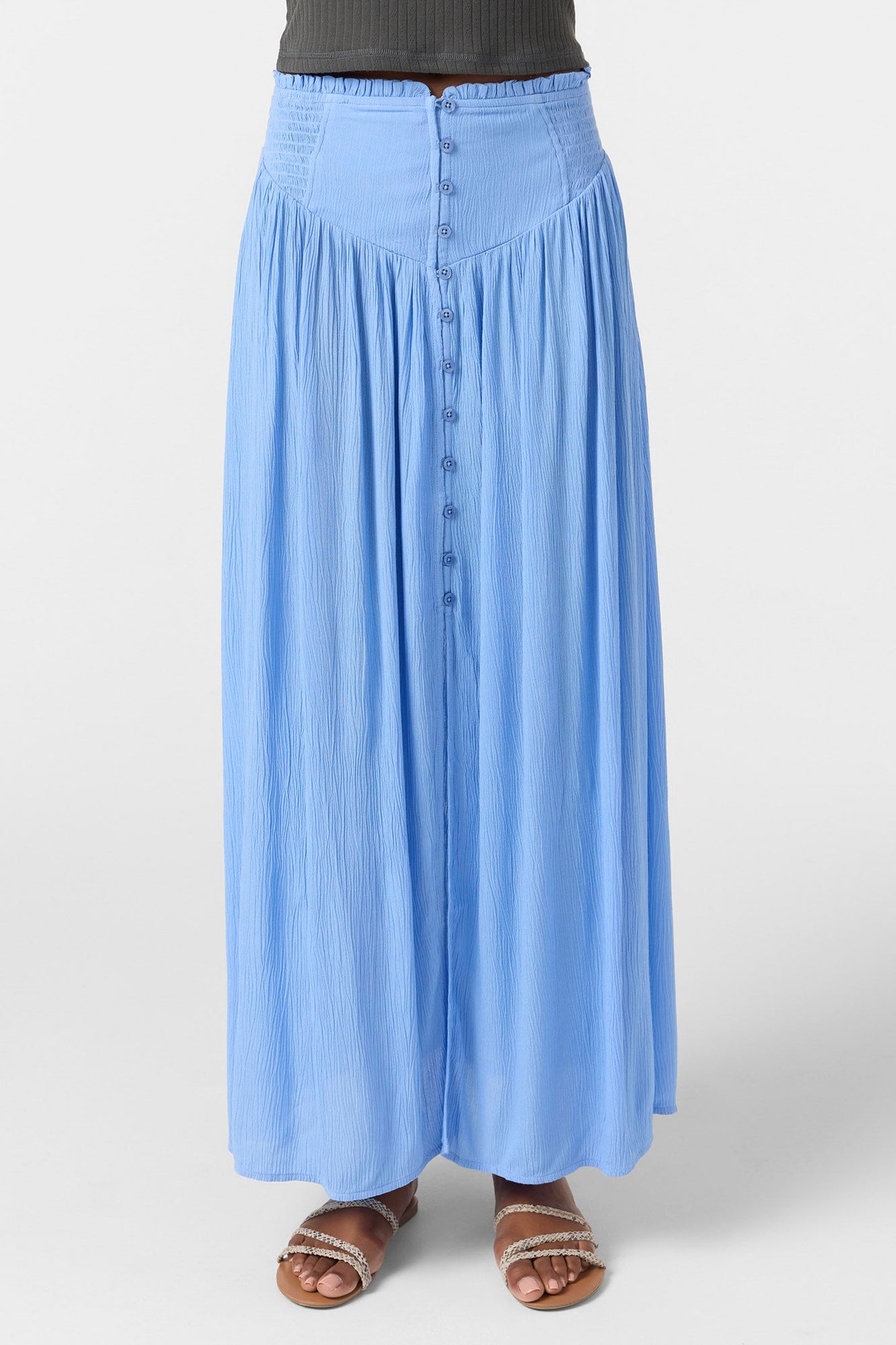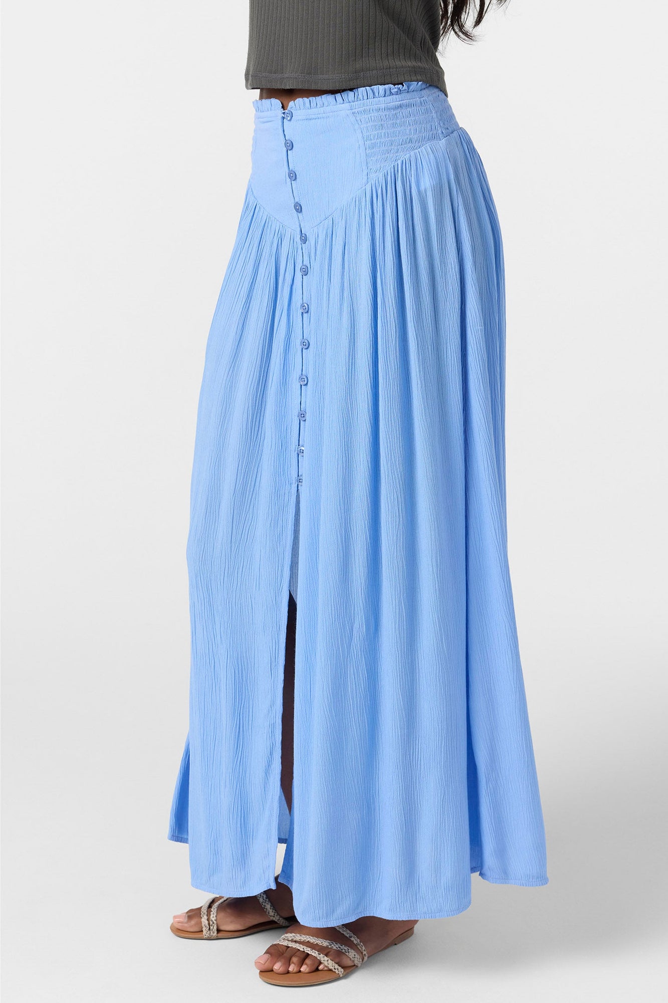Float through your day in our effortlessly chic maxi skirt, where breezy comfort meets timeless elegance. With its flowy fit, smocked waist, and charming button-front detail, this skirt is your go-to for sun-soaked adventures or moonlit strolls.